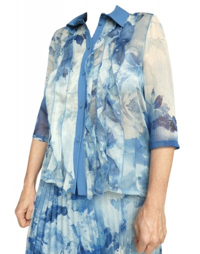 Art.24005, camicia donna manica 3/4, taglie regolari, in chiffon e crepè, fantasia azzurra.