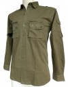 Art.052, camicia uomo in gabardina di cotone pettinato, manica lunga, taglie regolari, colore verde. Chiusura con asole e bottoni, due taschini a toppa sul petto con chiusura con cerniera e taschino sovrapposto con chiusura con bottoni, taschino a toppa sulla manica sinistra, spacchetti al fondo, comodi laccetti ferma manica che facilitano il bloccaggio della stessa nel caso venga risvoltata. Vestibilità comoda dai volumi ampi, camicia che veste in maniera morbida. Capo particolarmente confortevole, adatto a svariate situazioni che vanno dal relax in casa, al al lavoro, al tempo libero, alla caccia e pesca.