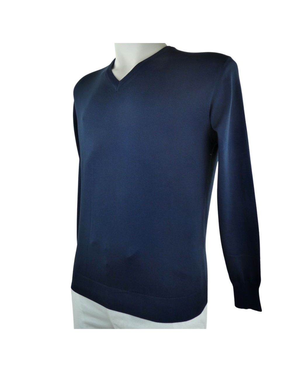 Art.u9001, maglia uomo scollo V, in filo di cotone, taglie regolari, colori blu e sabbia.
