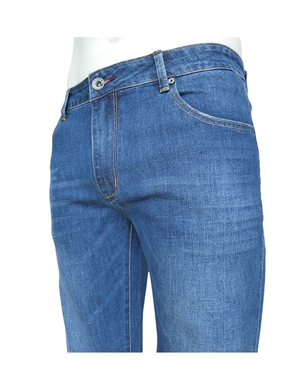 Coveri Moving art.cov1058, pantalone 5 tasche uomo, in denim elasticizzato, lavato blu stone wash sabbiato, taglie forti.