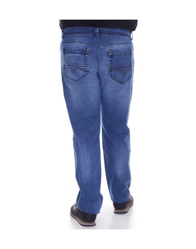 NOSTRA PRODUZIONE. Art.8190-4622+, pantalone 5 tasche uomo, taglie forti, in denim, lavato blu stone wash sabbiato, due tasche anteriori con sottostante taschino sul lato destro, due tasche posteriori. Vestibilità regolare, dai volumi proporzionati ne troppo aderenti ne troppo ampi, altezza vita regolare, fondo gamba regolare. Capo basico effetto vintage, per un uomo che ama vestire classico ma vuol essere aggiornato. Si adatta a svariate occasioni che vanno dalle situazioni domestiche, al lavoro, al tempo libero.