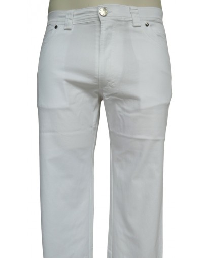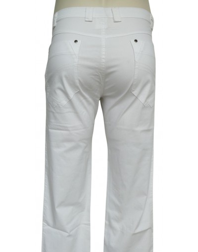 NOSTRA PRODUZIONE. Art.8037-4829, pantalone 5 tasche uomo, in cotone pettinato leggero elasticizzato, colore bianco, taglie regolari.