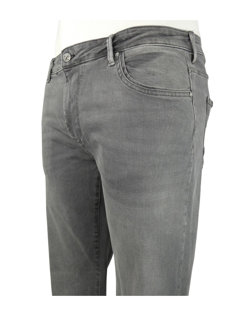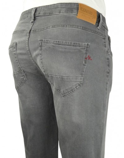 Coveri Moving art.cov1108, pantalone 5 tasche uomo, in denim colorato elasticizzato, lavato grigio stone wash sabbiato, taglie regolari.