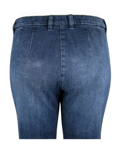 NOSTRA PRODUZIONE. Art.8783-2997fs, pantalone 3 tasche donna, in denim fiammato elasticizzato, lavato blu stone wash sabbiato, taglie regolari.