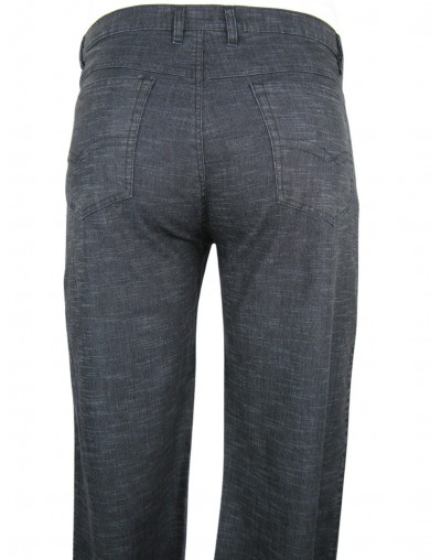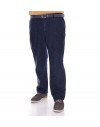 NOSTRA PRODUZIONE. Art.8392-3376, pantalone 5 tasche uomo, taglie forti, in denim elasticizzato "tela ragno", lavato blu dark stone washed, due tasche anteriori con sottostante taschino sul lato destro, due tasche posteriori. Vestibilità regolare, dai volumi proporzionati che veste ne troppo aderente ne troppo ampio, altezza vita regolare per un uomo che ama vestire classico e non vuol rinunciare al confort. Capo soffice, fresco, particolarmente confortevole e plurifunzionale, si adatta infatti a svariate occasioni che vanno dalle situazioni domestiche, al lavoro, al tempo libero.