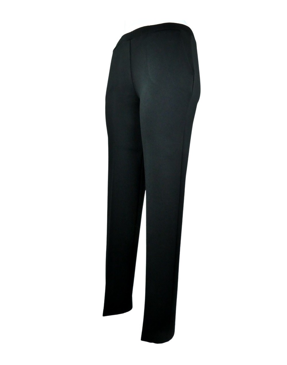 Art.7437, pantalone donna in tessuto a maglia elastica punto milano, tasca alla francese (obliqua), elastico dietro nel girovita, colori nero, grigio e petrolio, curvy fit.