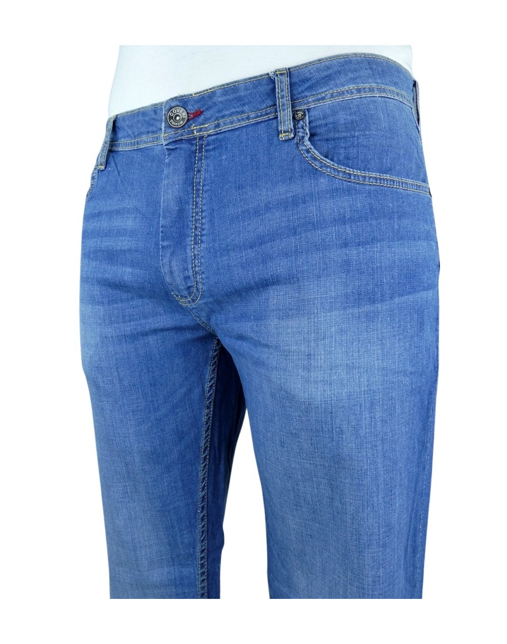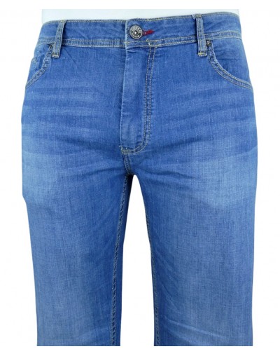 Coveri Moving art.cov611, pantalone 5 tasche uomo, in denim leggero elasticizzato, lavato azzurro stone wash sabbiato, taglie regolari.