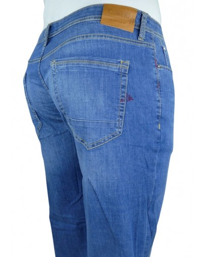 Coveri Moving art.cov611, pantalone 5 tasche uomo, taglie regolari, in denim leggero elasticizzato, lavato azzurro stone wash sabbiato, due tasche anteriori con sottostante taschino sul lato destro, due tasche posteriori. Vestibilità slim, dai volumi ridotti, abbastanza aderente, altezza vita regolare, gamba asciutta. Capo cool, prodotto per un uomo che ama vestire giovane ma non vuol rinunciare al confort. Morbido, particolarmente confortevole e plurifunzionale, si adatta infatti a svariate occasioni che vanno dalle situazioni domestiche, al lavoro, al tempo libero.
