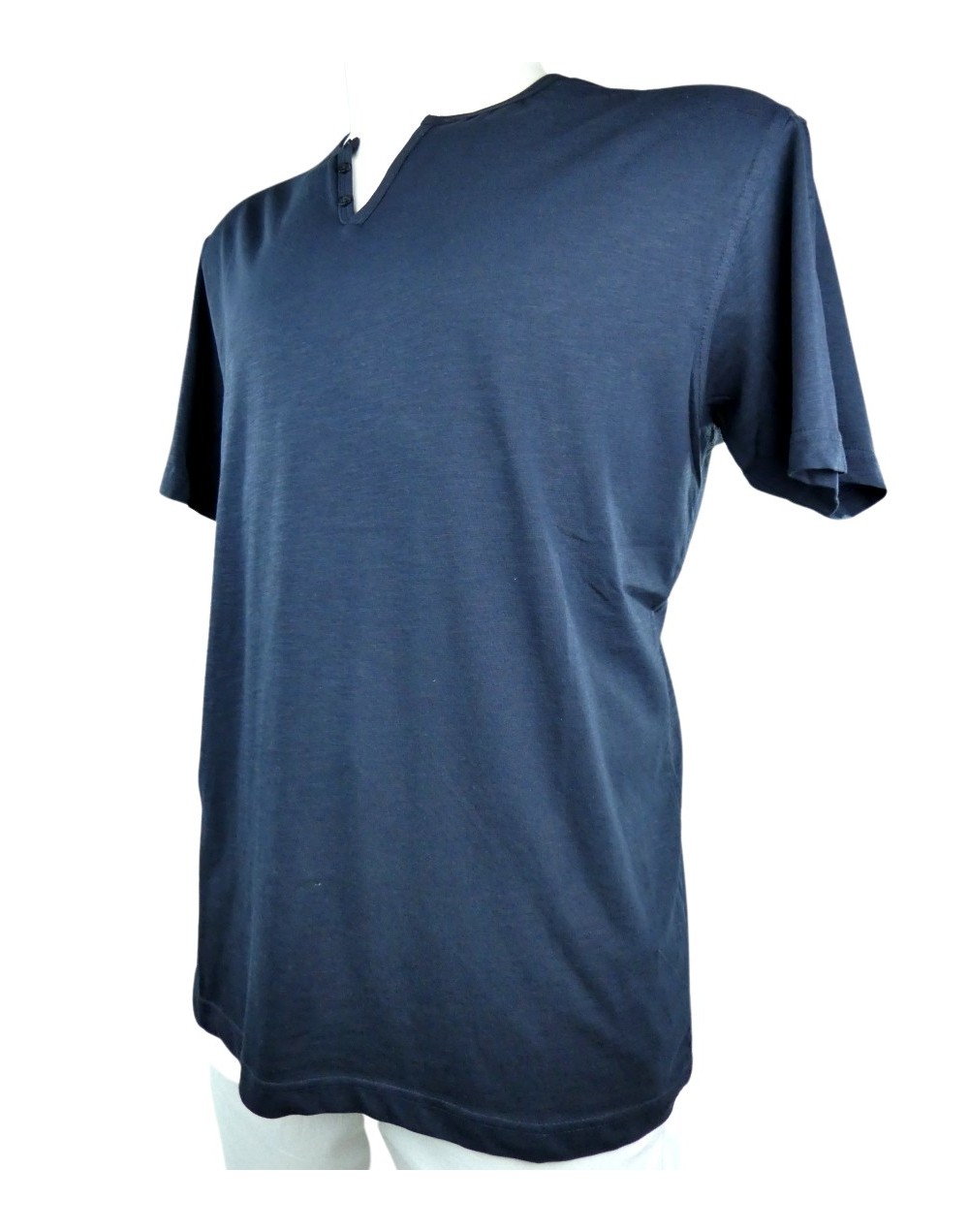 Be Board art.925c, t-shirt uomo girocollo apertura a finto serafino, mezza manica, taglie forti, in jersey di cotone fiammato, colori blu e verde miilitare. Capo morbido, fresco e particolarmente confortevole, adatto a svariate situazioni che vanno dal relax in casa allo sport al lavoro al tempo libero. Quando il caldo ti opprime, in lui troverai sempre un buon alleato.
